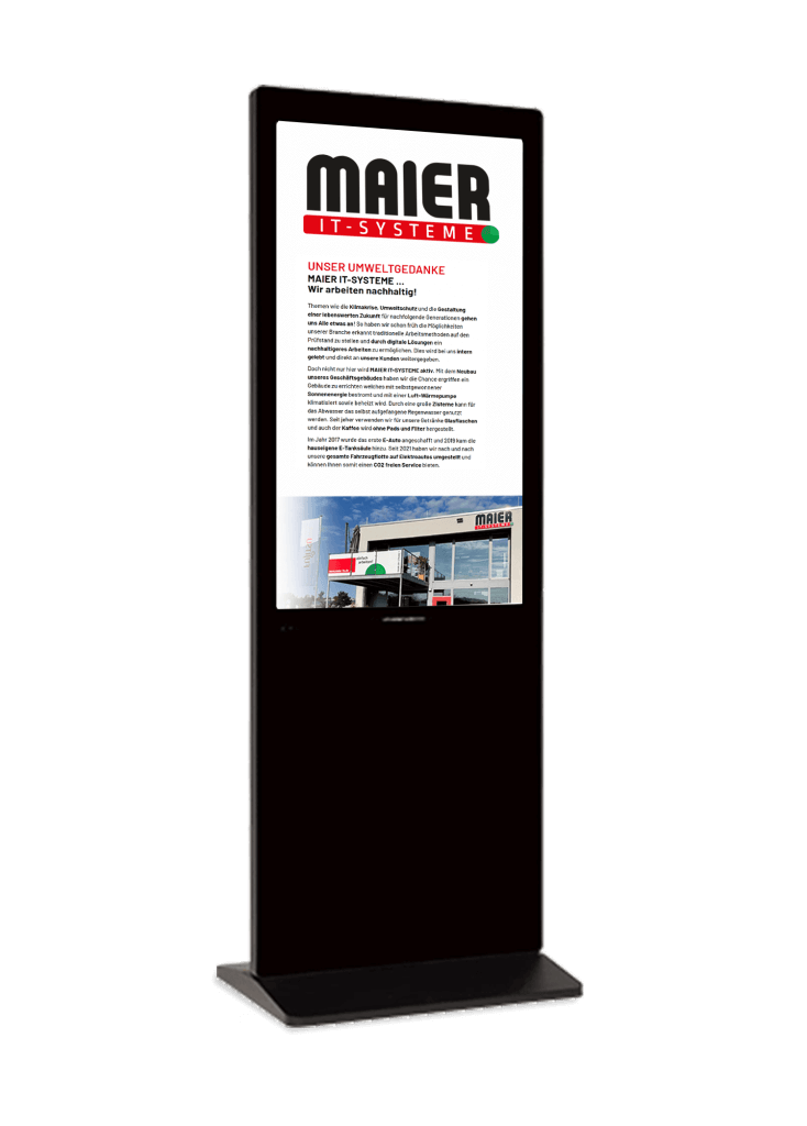 MAIER IT-SYSTEME ist offizieller Fachhandelspartner 2025 der wende.interaktiv GmbH und zum Verkauf von interaktiven Screens und anderen Produkten von wende.interaktiv berechtigt. Die Mitarbeiter sind in der Anwendung und Installation der Produkte geschult und verfügen über umfassende Kompetenzen zur professionellen Beratung der Lösungen von wende.interaktiv.